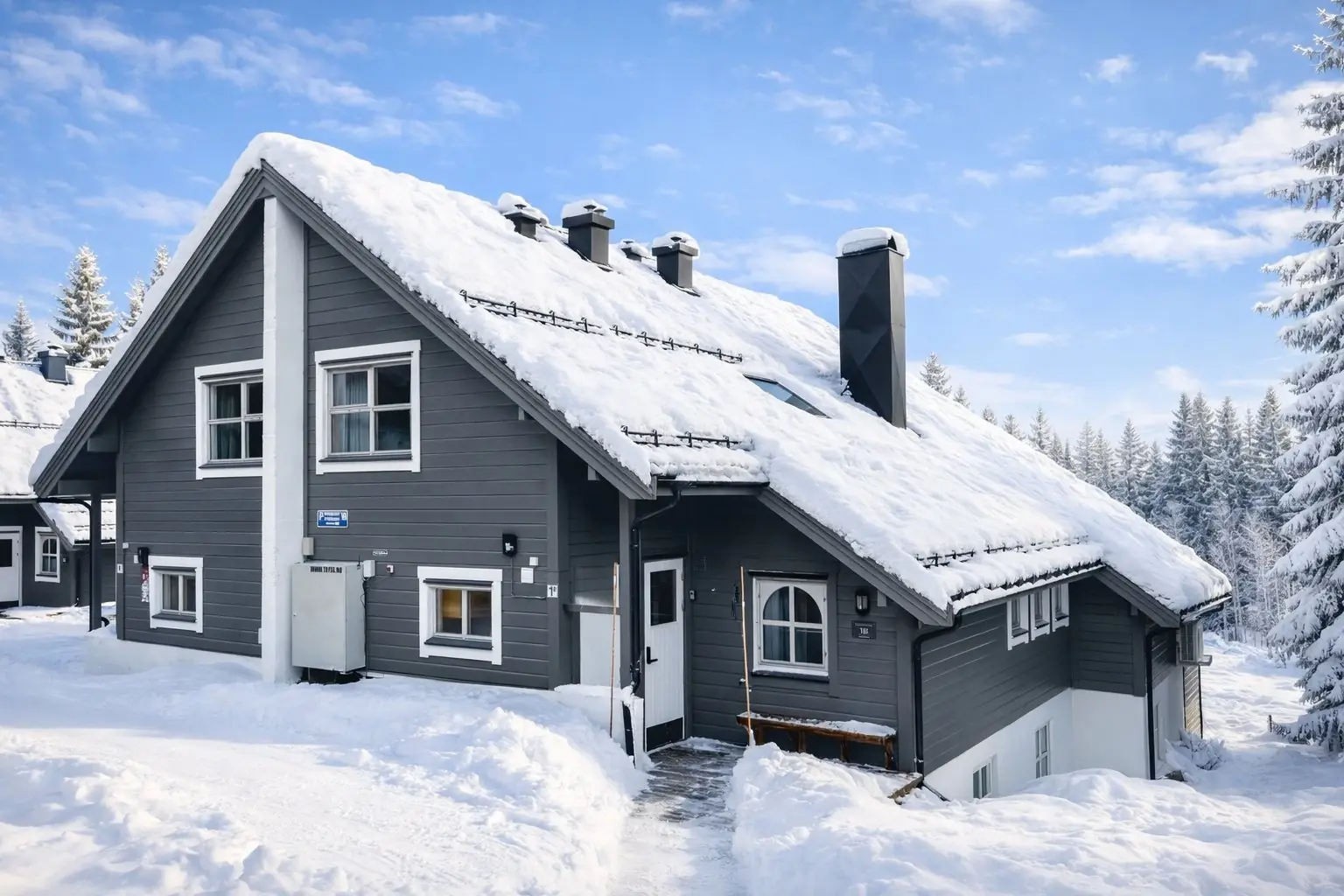 Bakkebygrenda 1B sits at Trysil Turistsenter — the beating heart of Norway's biggest ski resort. Five bedrooms, three bathrooms, a wood-burning fireplace, sauna, and a hot tub. At 127 square metres, it's built for big groups who want to feel at home while being minutes from everything Trysil offers.